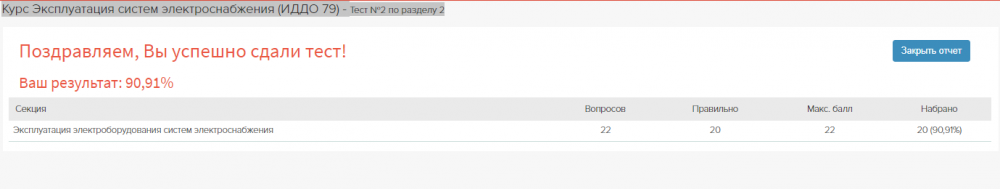 Курс Эксплуатация систем электроснабжения ( тест 2