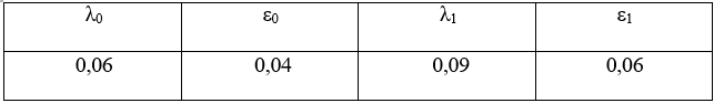 Модель отказов трубчатого разрядника предполагает наличие внезапных отказов и отказов из-за износа фибры. Известны интенсивности внезапных отказов из исправного состояния λ0 1/год; из состояния предотказов λ1 1/год; интенсивность износа ε0 1/год и интенсивность постепенных отказов из состояния предотказов ε1 1/год. Найти зависимость функции надежности, плотности распределения наработки до отказа и интенсивности отказов от наработки. Рассчитать математическое ожидание наработки до отказа.