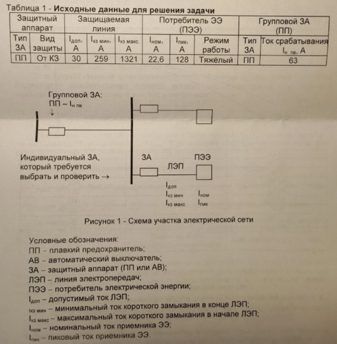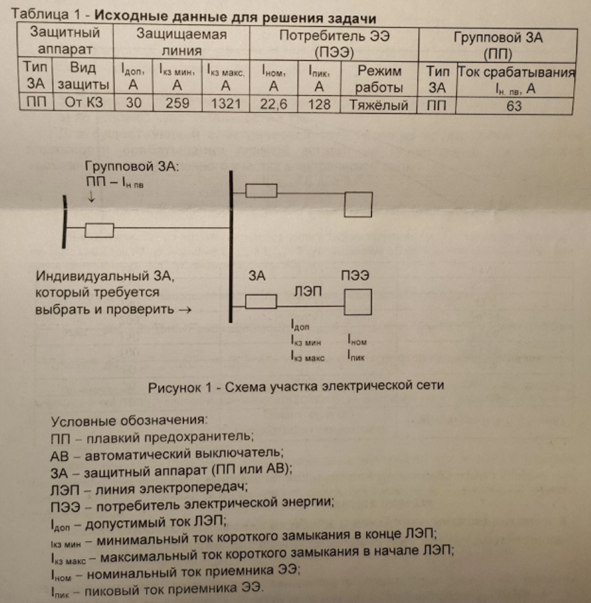 Главная » Учебные материалы » Электрические аппараты до 1000В » Домашние задания » ИГЭУ им. Ленина » 5 семестр » Номер 2 » Выбрать тип и рассчитать параметры плавкого предохранителя во вновь вводимой электрической сети трехфазного потребителя электрической энергии. Выбранный предохранитель проверить по условиям чувствительности к токам коротких замыканий, селективности и