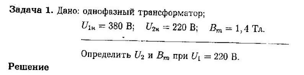 Задача 1. Дано: однофазный трансформатор; U1н = 380 B; U2н = 220 B; Bm = 1,4 Tл.