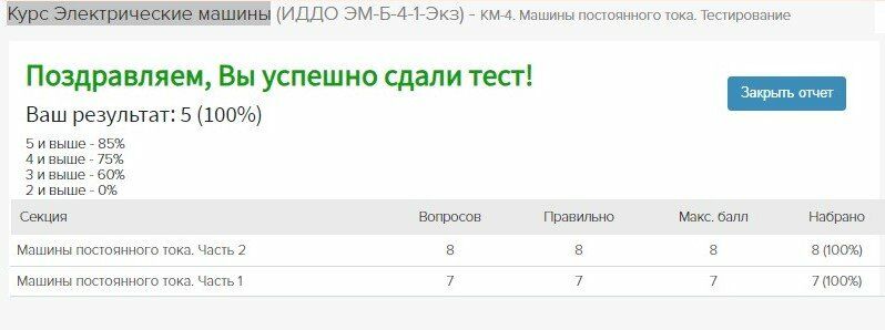 🙋‍♂️🙋‍♂️🙋‍♂️ Коллекция ответов на 100 % Электрические машины км-4 (машины постоянного тока) 15 вопросов.