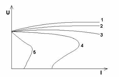 Какая из внешних характеристик соответствует генератору с независимым возбуждением?
