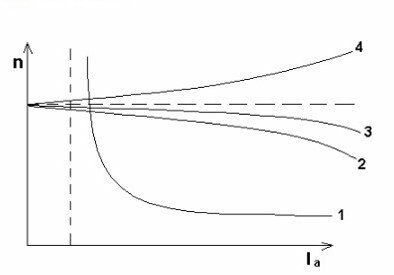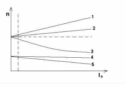 Какая из скоростных характеристик соответствует двигателю смешанного возбуждения при встречном включении обмоток?
