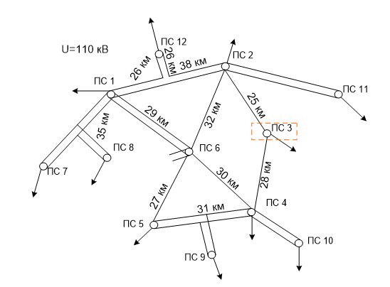 Состав потребителей узла 3 по надёжности: I категории – 20%; II категории – 40%; III категории – 40%.
