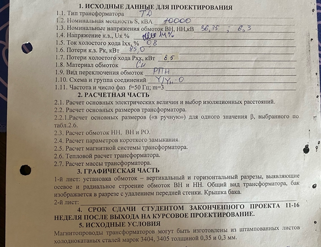 Для студентов по предмету Электрические машиныПроектирование силового трансформатора ТД-10000/35Проектирование силового трансформатора ТД-10000/35