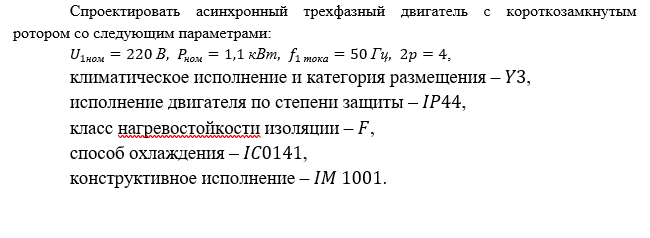 Спроектировать асинхронный трехфазный двигатель с короткозамкнутым ротором со следующим параметрами: