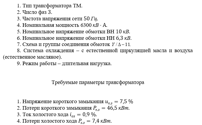 Требуемые параметры трансформатора