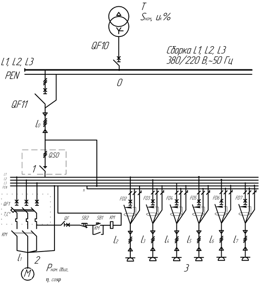 1.2. Рассчитать ток линии с асинхронным двигателем.