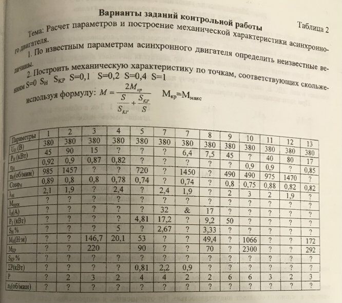 По известным параметрам асинхронного двигателя определить неизвестные величины