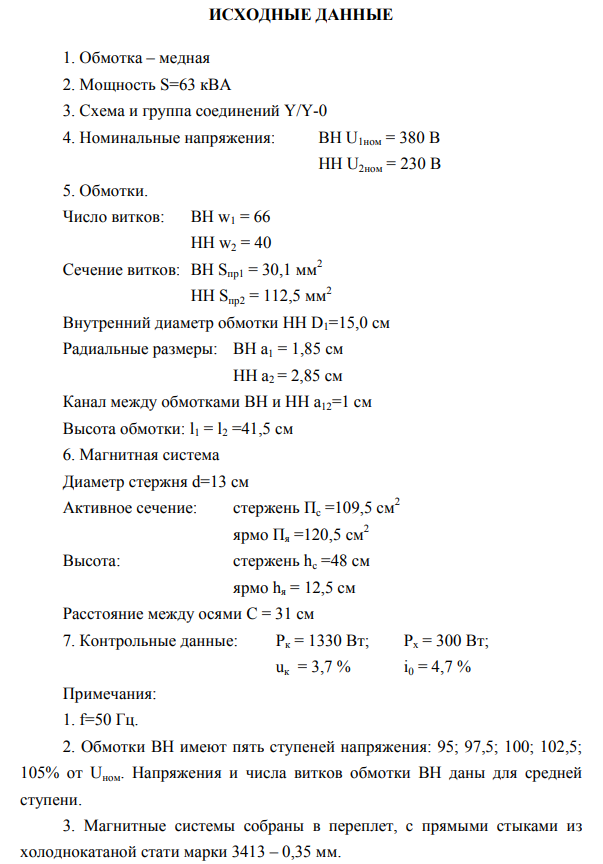 Для студентов по предмету Электрические машиныРасчет трансформатора ТСЗ-63/0,38/0,23Расчет трансформатора ТСЗ-63/0,38/0,23