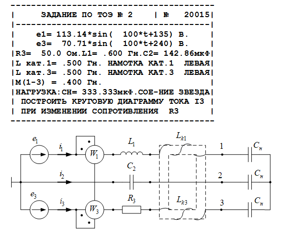 1. Разметить одноименные зажимы индуктивно связанных катушек.