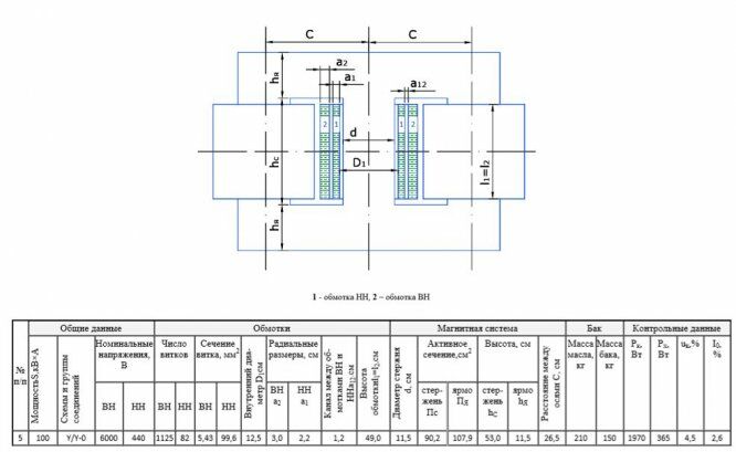 Для 3-фазного двухобмоточного трансформатора №… из таблицы 2 (первичная обмотка – обмотка ВН):