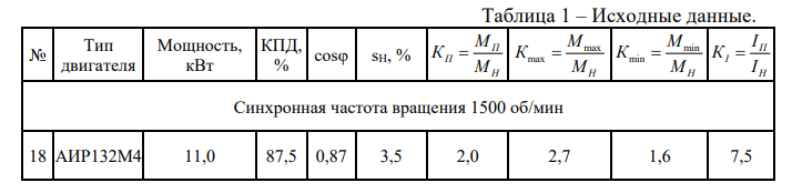 ДЗ: Определение характеристик трехфазного асинхронного двигателя по паспортным данным