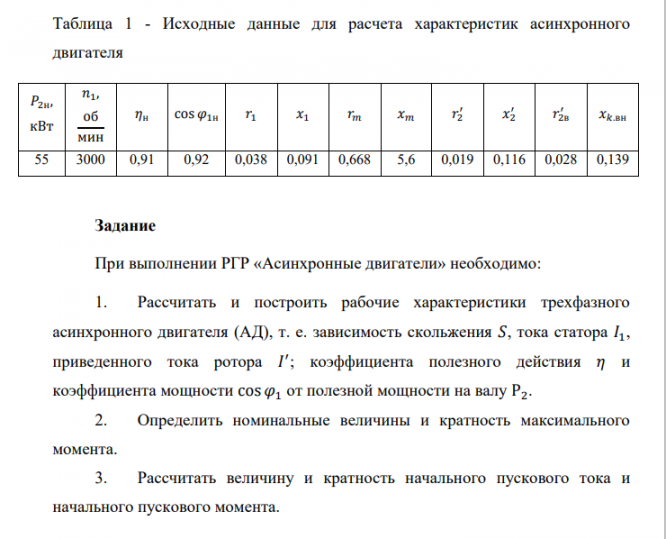 При выполнении РГР «Асинхронные двигатели» необходимо:
