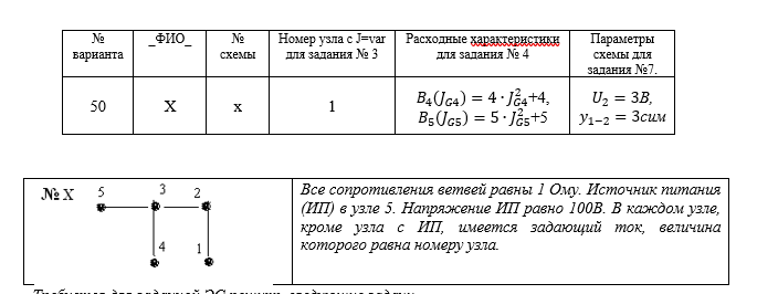Номер узла с J=var для задания № 3Расходные характеристики для задания № 4Параметры схемы для задания №7.