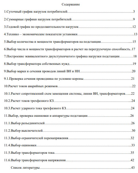 В данной работе дана тупиковая подстанция напряжением 110/10 кВ, связанная с энергосистемой двухцепной воздушной линией напряжением 110 кВ, длинной 60 км. Мощность короткого замыкания на шинах системы Sк.з. = 750 МВА, а так же следующие наименования потребителей: