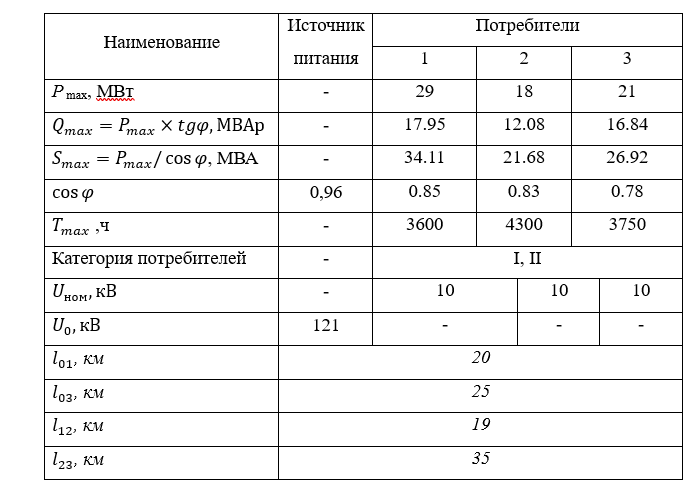 Цель работы: расчёт режима максимальных нагрузок замкнутой электрической сети по аналитическим выражениям.