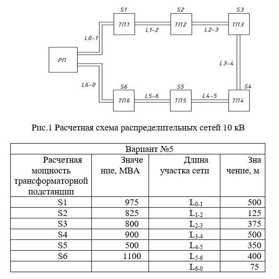 ДЗ: Расчет кольцевой (петлевая схема) распределительной сети 10 кВ