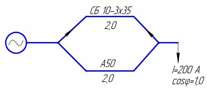 Для студентов по предмету Электрические сетиНайти токораспределение в кольцевой сети 10 кВ (Рисунок 3.1), выполненной кабелем СБ10-3х35 с сечением медных жил 35 мм2 и воздушной линией с проводамНайти токораспределение в кольцевой сети 10 кВ (Рисунок 3.1), выполненной кабелем СБ10-3х35 с сечением медных жил 35 мм2 и воздушной линией с проводам
