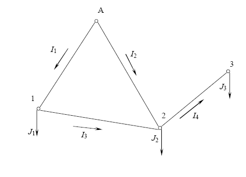 Требуется распределить мощность конденсаторных батарей Qk∑=150 кВАр, при минимальных потерях активной мощности, между двумя потребителями(узлы 7 и 11) в заданной электрической сети(рисунок – 1); сопротивление участков Rij=0,5Ω; реактивная нагрузка по