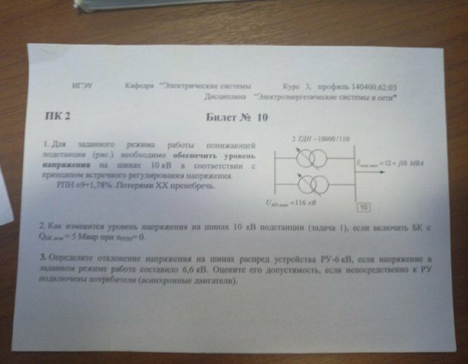 Для студентов ИГЭУ им. Ленина по предмету Электрические сетиДля заданного режима работы понижающей подстанции необходимо обеспечить уровень напряжения на шинах 10кВ в соответствии с принципом встречного регулирДля заданного режима работы понижающей подстанции необходимо обеспечить уровень напряжения на шинах 10кВ в соответствии с принципом встречного регулир