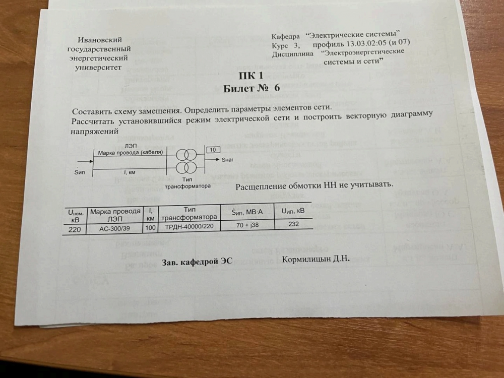 Главная » Учебные материалы » Электрические сети » Решения задач » ИГЭУ им. Ленина » 5 семестр » Номер ПК-1 » Вариант 6 » Составить схему замещения. Определить параметры сети. Рассчитать установившийся режим электрической сети и построить векторную диаграмму напряжений