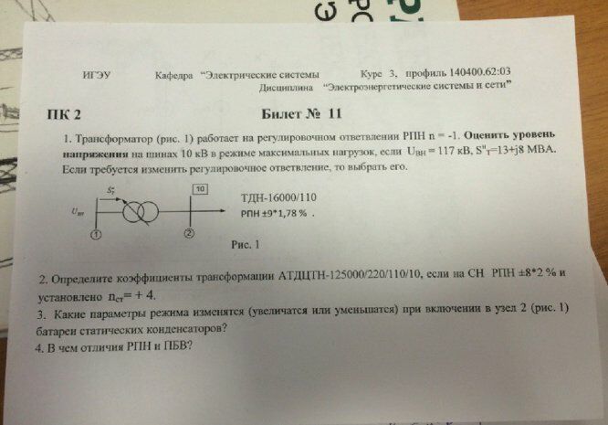 Главная » Учебные материалы » Электрические сети » Решения задач » ИГЭУ им. Ленина » 6 семестр » Номер 2 » Вариант 11 » Трансформатор работает на регулировочном ответвлении РПН n = -1. Оценить уровень напряжения на шинах 10 кВ в режиме максимальных нагрузок, если Uвн= 117 кВ, Sнт=13+j8 MBA. Если требуется изменить регулировочное ответвление, то выбрать его.