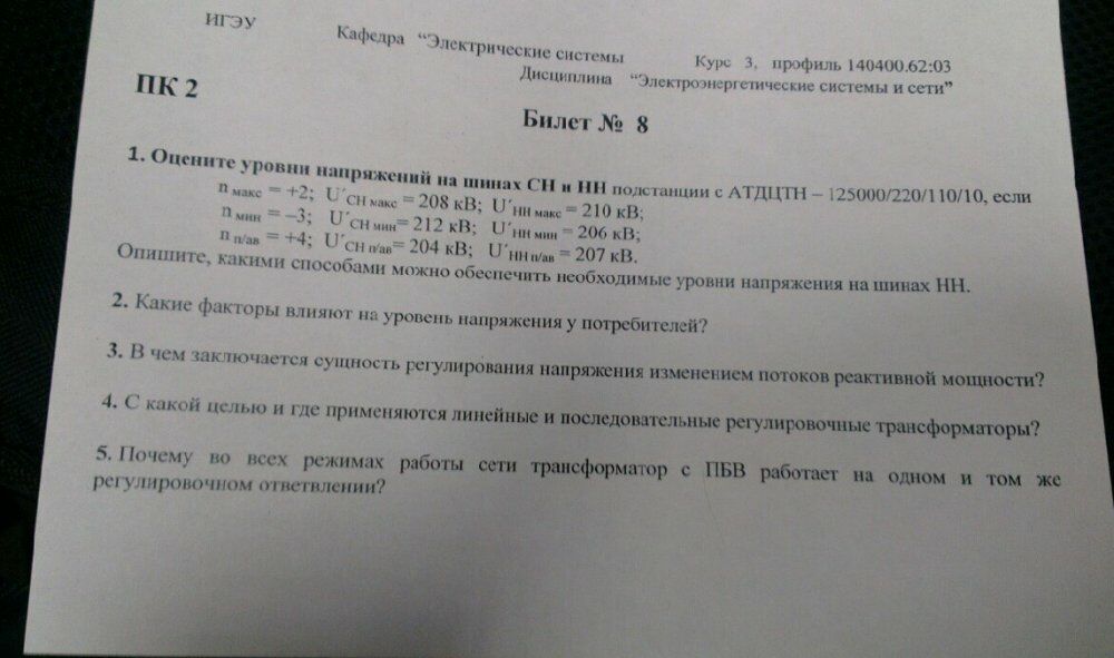 Для студентов ИГЭУ им. Ленина по предмету Электрические сетиОцените уровни напряжений на шинах СН и НН подстанции с АТДЦТН - 125000/220/110/10Оцените уровни напряжений на шинах СН и НН подстанции с АТДЦТН - 125000/220/110/10