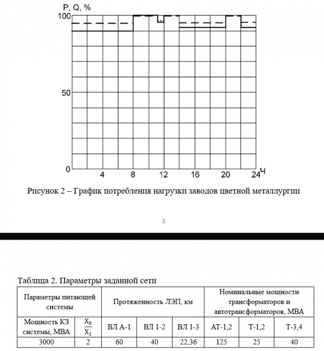 В соответствии с заданием преподавателя выбирается суточный график нагрузки (рисунок №2). Графики нагрузки представлены на рис. 1 – 32. На рисунках нагрузка на графиках приведена в процентах. В часы максимума нагрузки на графике значения активной и реактивной мощностей принимаются равными 100 %. Сплошная линия на графике соответствует активной мощности Р, а пунктирная – реактивной мощности Q.