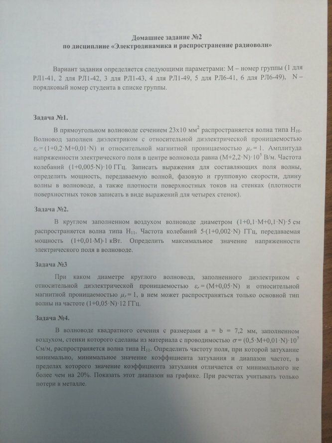 Для студентов МГТУ им. Н.Э.Баумана по предмету Электродинамика и распространение радиоволн (ЭД и РРВ)Домашнее задание 2Домашнее задание 2