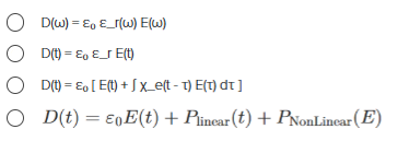 В каком из следующих случаев материальное уравнение для электрической индукции записано