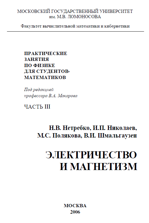 Для студентов по предмету ЭлектродинамикаН.В. Нетребко, И.П. Николаев, М.С. Полякова, В.И. Шмальгаузен - Электричество и магнетизмН.В. Нетребко, И.П. Николаев, М.С. Полякова, В.И. Шмальгаузен - Электричество и магнетизм 2019-05-15СтудИзба