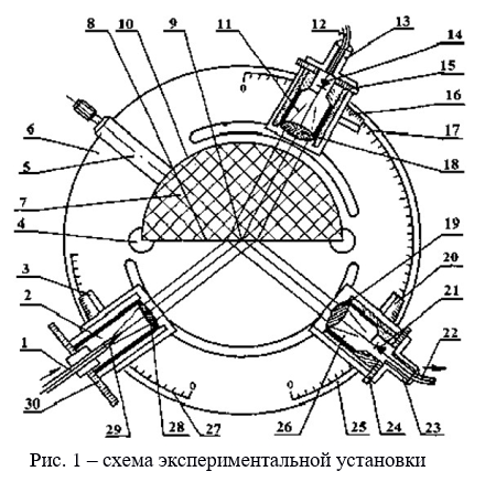 15, 24 — кольца для изменения поляризации излучения передающей антенны 17, 25, 27 — шкалы для отсчета углов преломления, отражения и падения