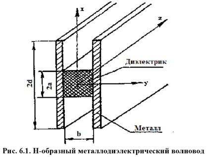 Н-образный металлодиэлектрический волновод представляет собой диэлектрическую пластину, ограниченную с двух сторон металлическими плоскостями.