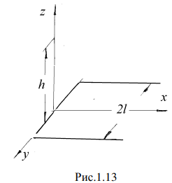 Полубесконечная полоса шириной 2l заряжена с постоянной поверхностной плотностью σ. Найдите напряженность электрического поля в точке М, находящейся на расстоянии h от полосы на перпендикуляре, восстановленном в начале полосы из точки, лежащей на ее средней линии (см. рис. 1.13).