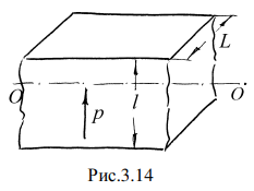 Имеется бесконечная полоса диэлектрика толщиной l и шириной L. Материал пластины поляризован. Вектор поляризации P постоянен и перпендикулярен бесконечной границе полосы, как показано на рис. 3.14. Найдите напряженность E и индукцию D поля на средней линии ОО’ в двух случаях: