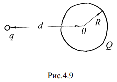 Проводящая сфера радиусом R имеет заряд Q. В сфере имеется малое отверстие (см. рис. 4.9). Как будет меняться потенциал сферы, если точечный заряд q перемещать из бесконечности через отверстие внутрь шара?