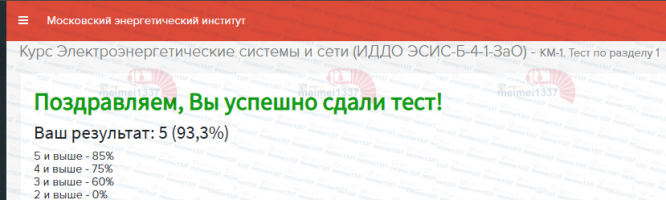 Для студентов ИДДО НИУ «МЭИ» по предмету Электроэнергетические системы и сетиКМ-1. Тест по разделу 1 - 93,3%КМ-1. Тест по разделу 1 - 93,3%