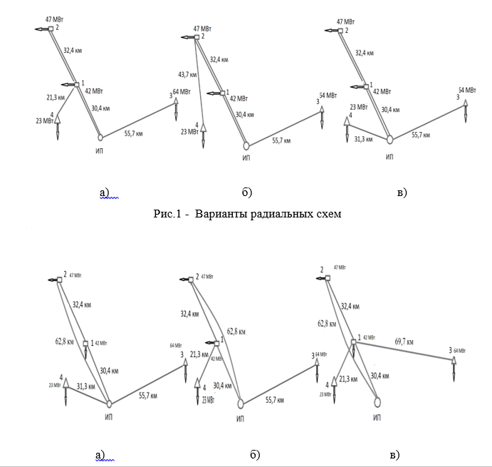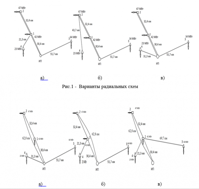 Разработка вариантов конфигураций электрической сети и выбор двух лучших.