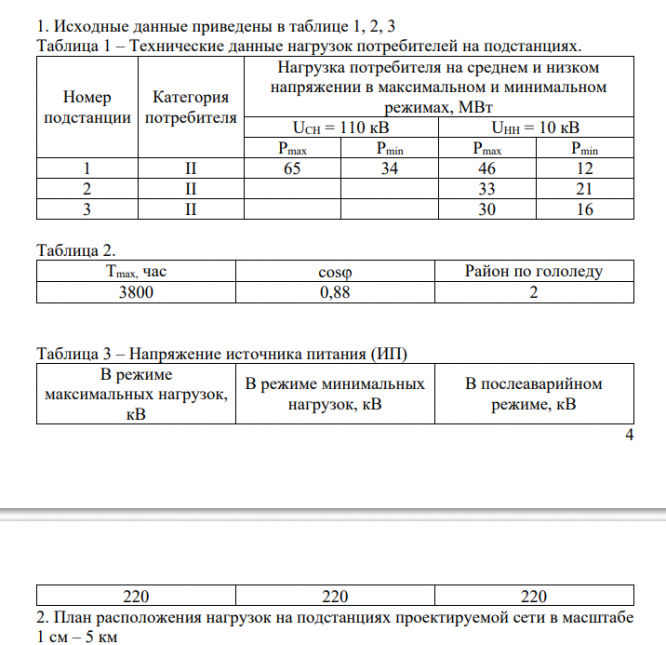 Для студентов по предмету Электроэнергетические системы и сетиРасчёт районной электрической сети напряжением 220 кВРасчёт районной электрической сети напряжением 220 кВ