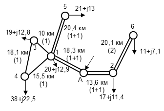 Электроснабжение этих пунктов осуществляется от крупной узловой подстанции А. Сеть располагается во втором районе по гололеду, воздушные линии электропередачи выполнены на железобетонных опорах.