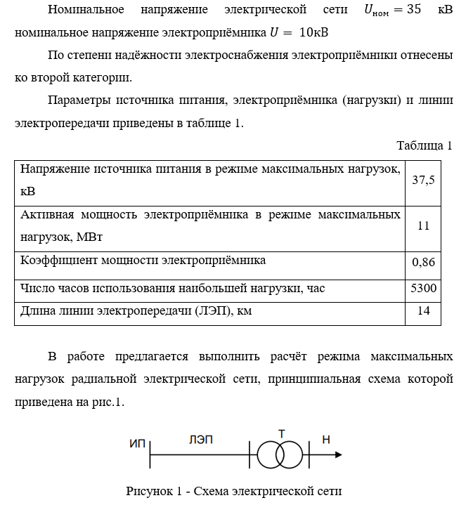 Лабораторная работа: расчёт режима максимальных нагрузок радиальной электрической сети