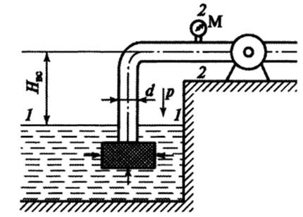 Центробежный насос должен обеспечить расход и давление на выходе . Всасывающая труба имеет диаметр и длину , а также фильтр на входе, имеющий местный коэффициент сопротивления . Всасывание воды осуществляется из открытого резервуара. Коэффициент потерь на трение , коэффициент местных сопротивлений . Определить высоту всасывания .