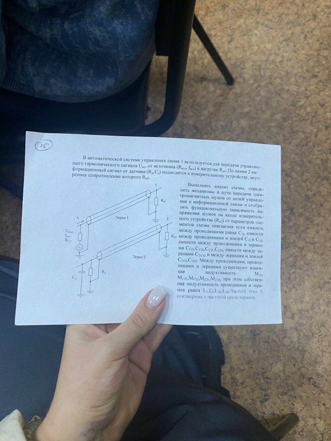 Главная » Учебные материалы » Электромагнитная совместимость » Решения задач » ИГЭУ им. Ленина » 7 семестр » Номер 1 » Вариант 15 » Выполнить анализ схемы, определить механизмы и пути передачи электромагнитных шумов от цепей управления к информационной линии и отобразить функциональную зависимость напряжения шумов на входе измерительного устройства