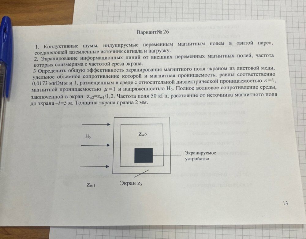 Для студентов ИГЭУ им. Ленина по предмету Электромагнитная совместимостьОпределить общую эффективность экранирования магнитного поля экраном из листовой меди, удельное объемное сопротивление которой и магнитная проницаемосОпределить общую эффективность экранирования магнитного поля экраном из листовой меди, удельное объемное сопротивление которой и магнитная проницаемос
