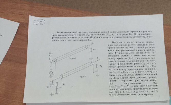 Главная » Учебные материалы » Электромагнитная совместимость » Решения задач » ИГЭУ им. Ленина » 7 семестр » Номер 2 » Вариант 10 » Выполнить анализ схемы, определить механизмы и пути передачи электромагнитных шумов от цепей управления к информационной линии и отобразить функциональную зависимость напряжения шумов на входе измерительного устройства