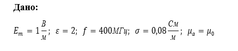 Главная » Учебные материалы » Электромагнитная совместимость » Решения задач » Несколько классов/семестров » Плоская электромагнитная волна с частотой f распространяется в безграничной среде с диэлектрической проницаемостью