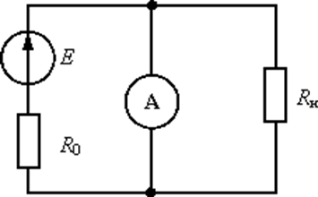 Определить показания амперметра в режиме согласования нагрузки, если Е = 10, R0 = 1.