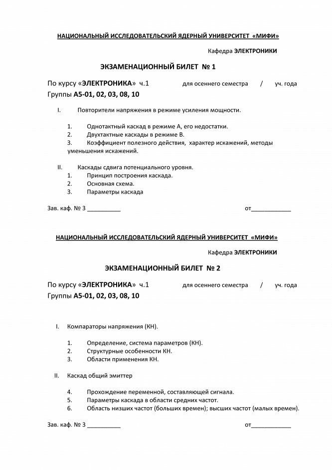 Для студентов НИЯУ МИФИ по предмету ЭлектроникаРасписанные билеты по электроникеРасписанные билеты по электронике