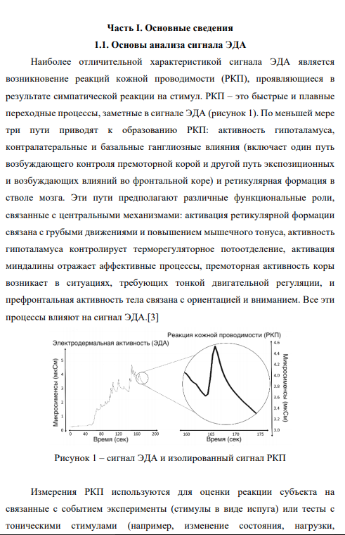 Сигнал электродермальной активности (ЭДА) – это электрическое проявлением симпатической иннервации потовых желез, а именно периодическое изменение импеданса кожных покровов.